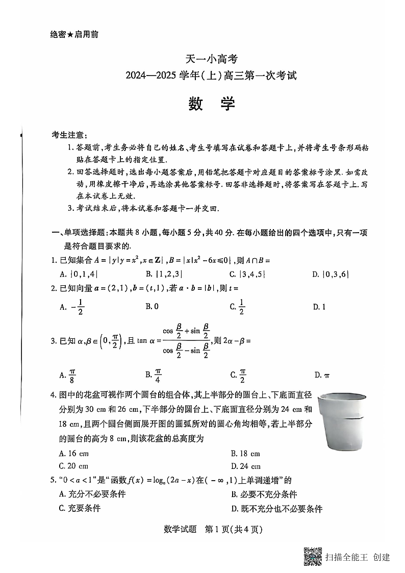 天一大联考2024-2025学年(上)高三第一次考试 数学