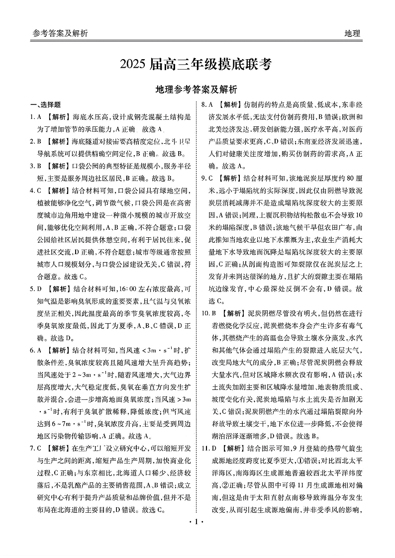 广东省衡水金卷2025届高三年级上学期8月摸底联考 地理答案