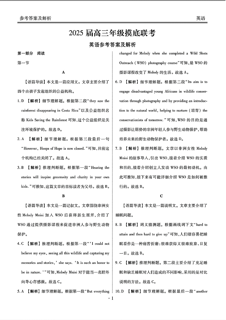 广东省衡水金卷2025届高三年级上学期8月摸底联考 英语答案