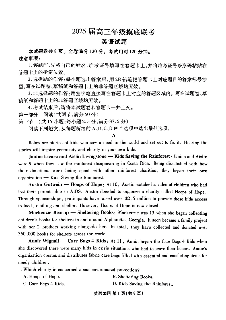 广东省衡水金卷2025届高三年级上学期8月摸底联考 英语