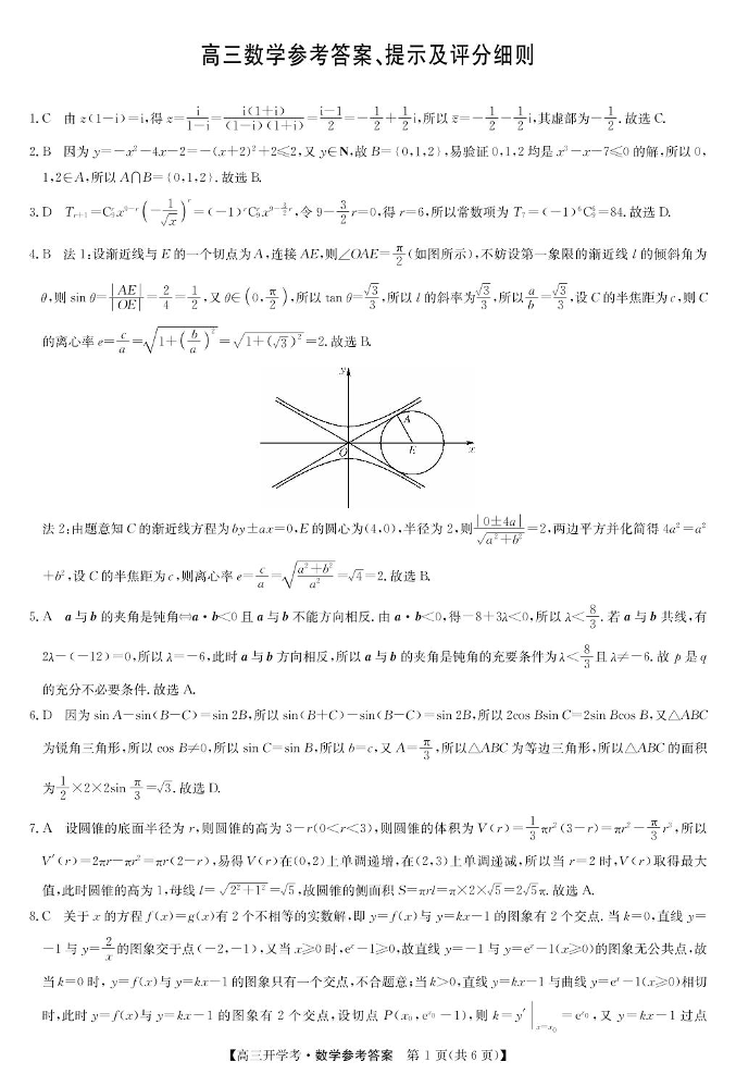 河南省开封五县考2024-2025学年高三上学期开学联考 数学答案