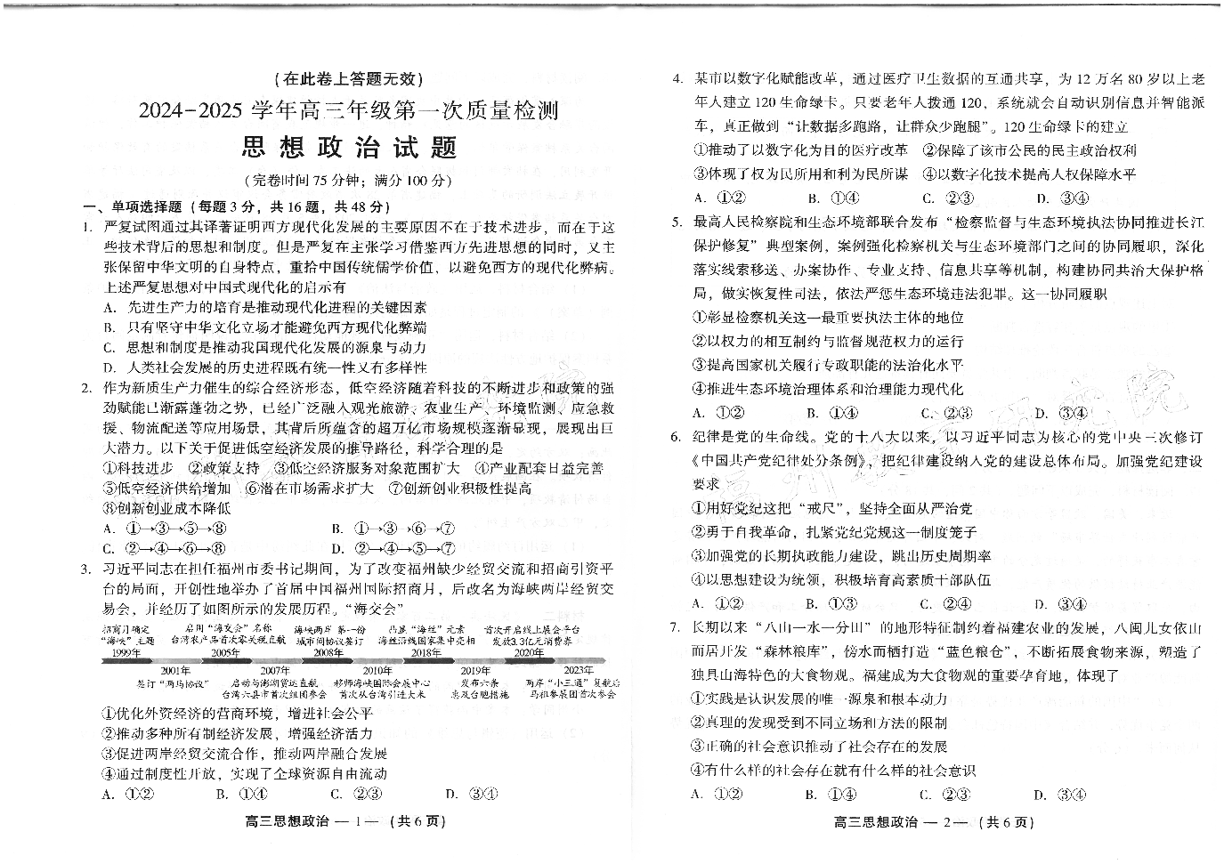 福建省福州市2024-2025学年高三年级上学期第一次质量检测 政治