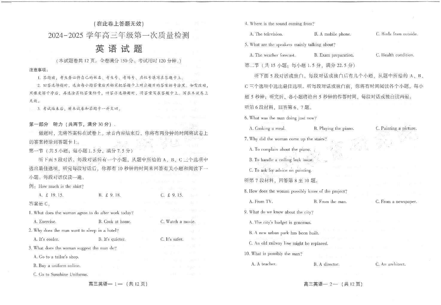 福建省福州市2024-2025学年高三年级上学期第一次质量检测 英语