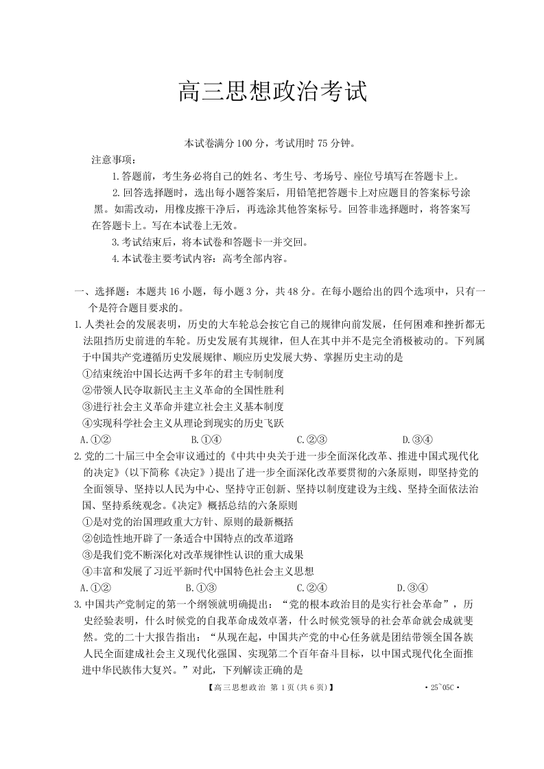 河北省邢台市邢襄联盟2024-2025学年高三上学期开学考试 政治