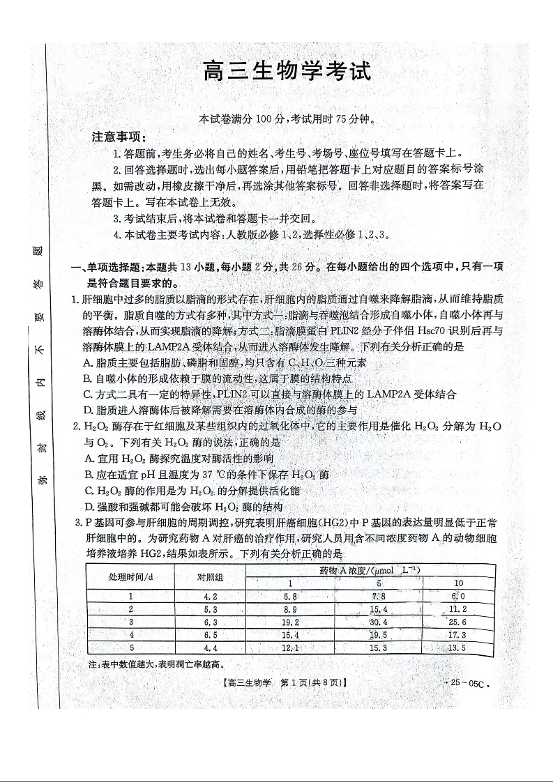 河北省邢台市邢襄联盟2024-2025学年高三上学期开学考试 生物