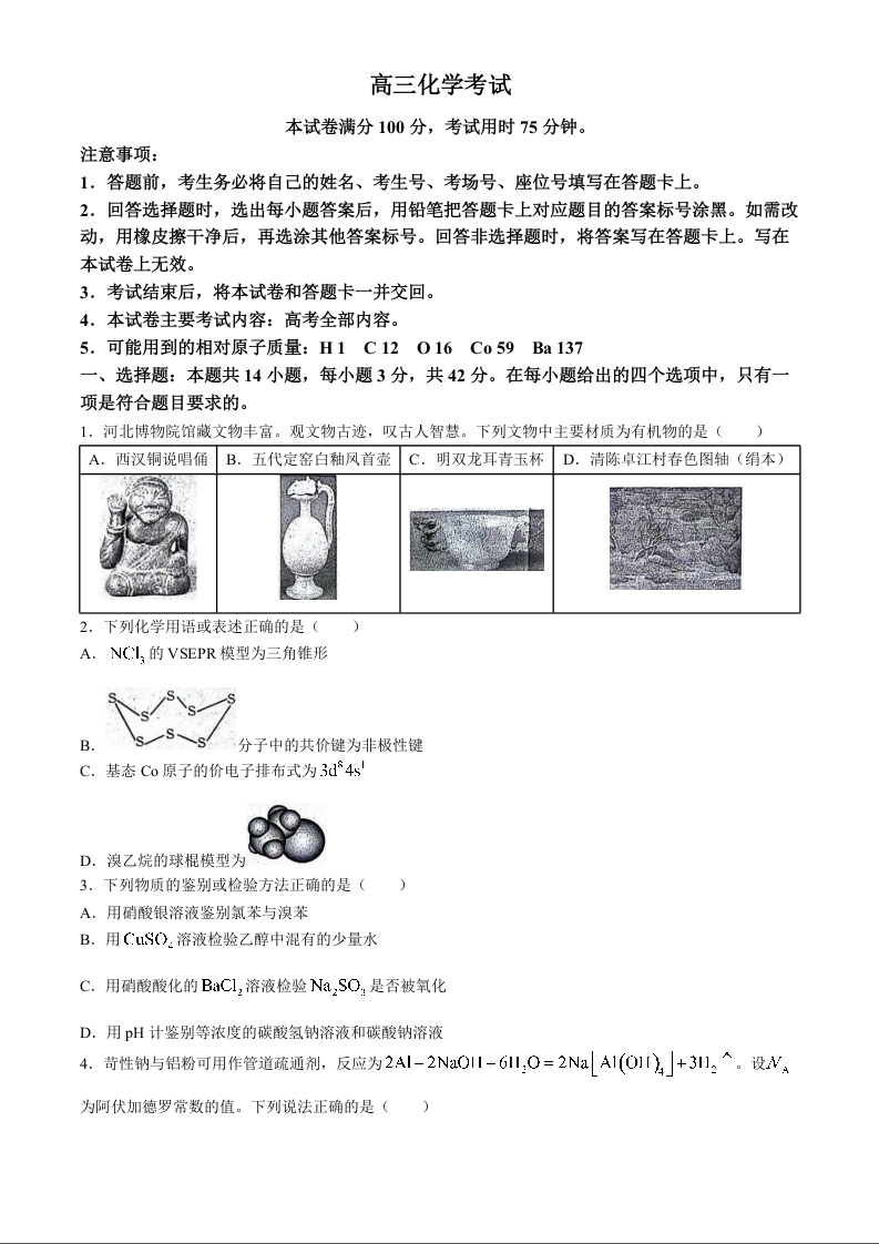 河北省邢台市邢襄联盟2024-2025学年高三上学期开学考试 化学