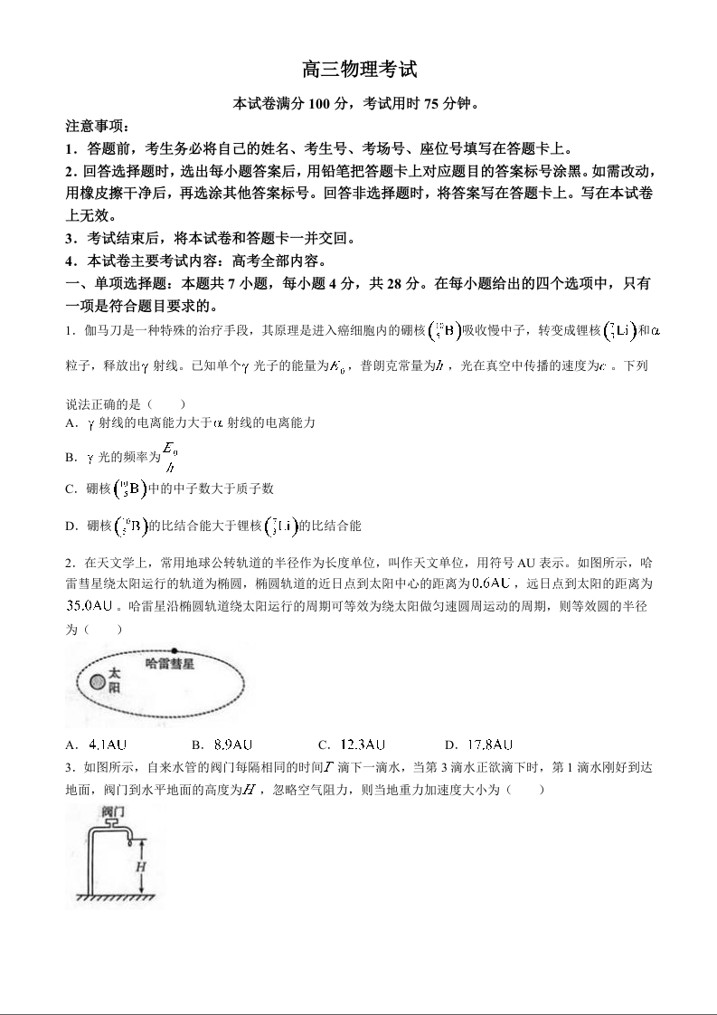 河北省邢台市邢襄联盟2024-2025学年高三上学期开学考试 物理