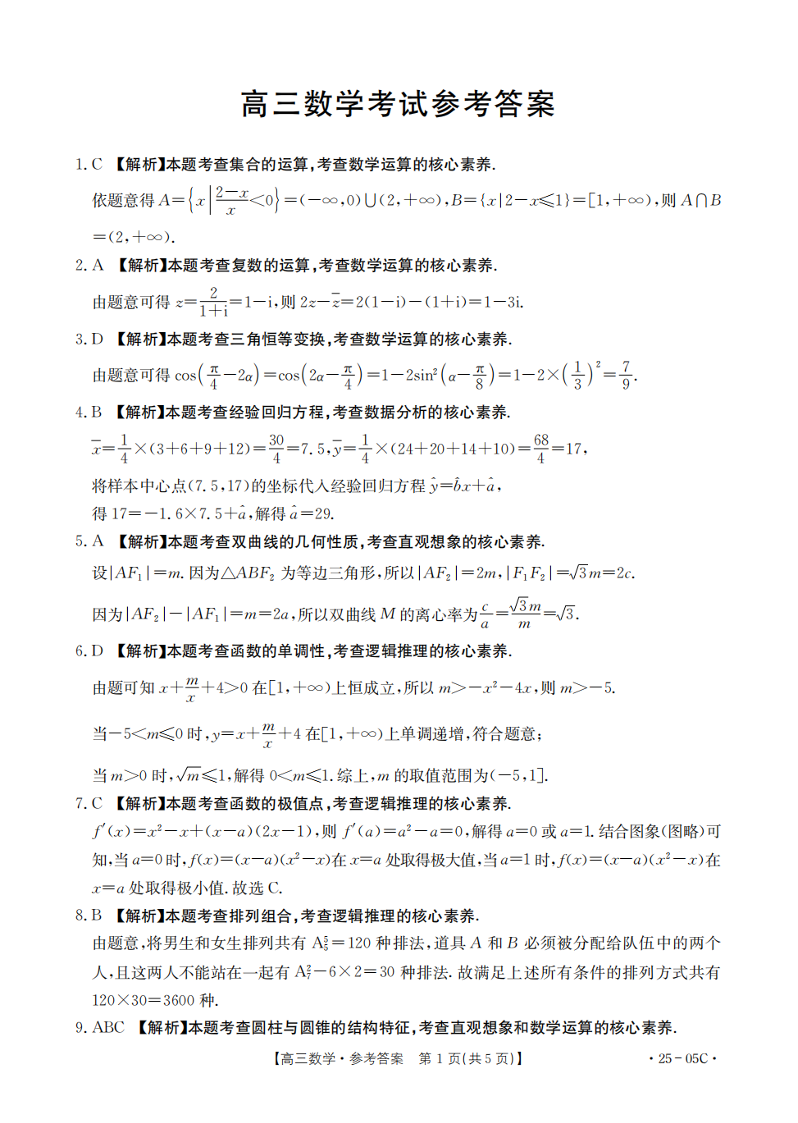 河北省邢台市邢襄联盟2024-2025学年高三上学期开学考试 数学答案