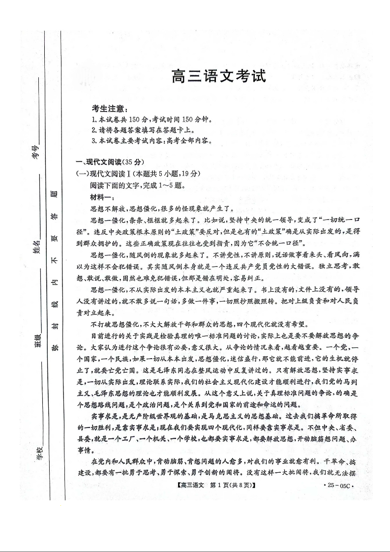 河北省邢台市邢襄联盟2024-2025学年高三上学期开学考试 语文