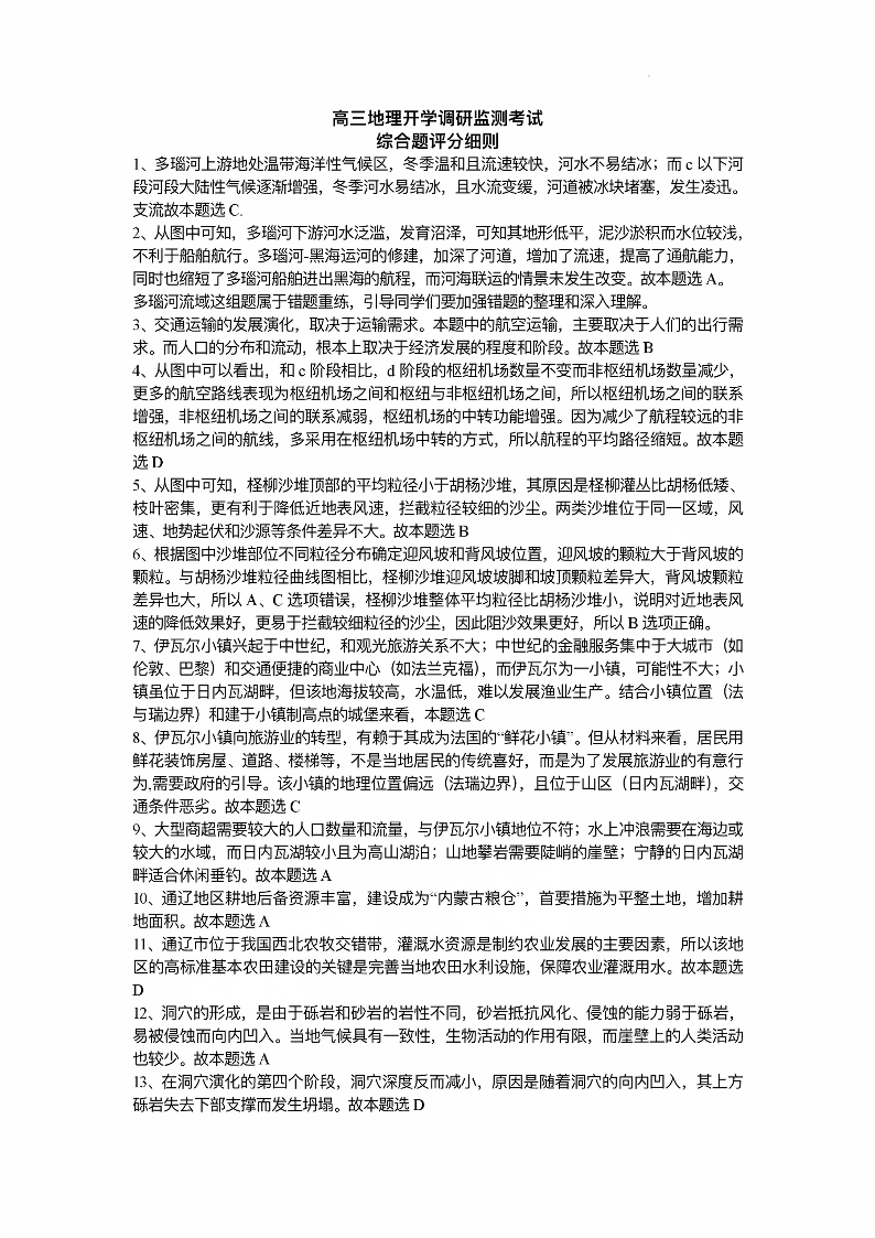 山东省潍坊市2025届高三开学调研监测考试 地理答案