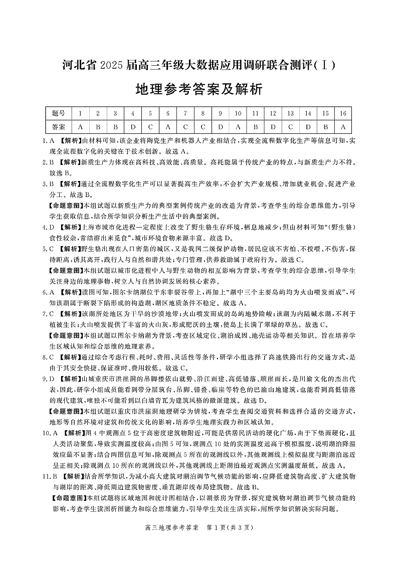 河北省2025届高三大数据9月应用调研联合测评(Ⅰ)地理答案