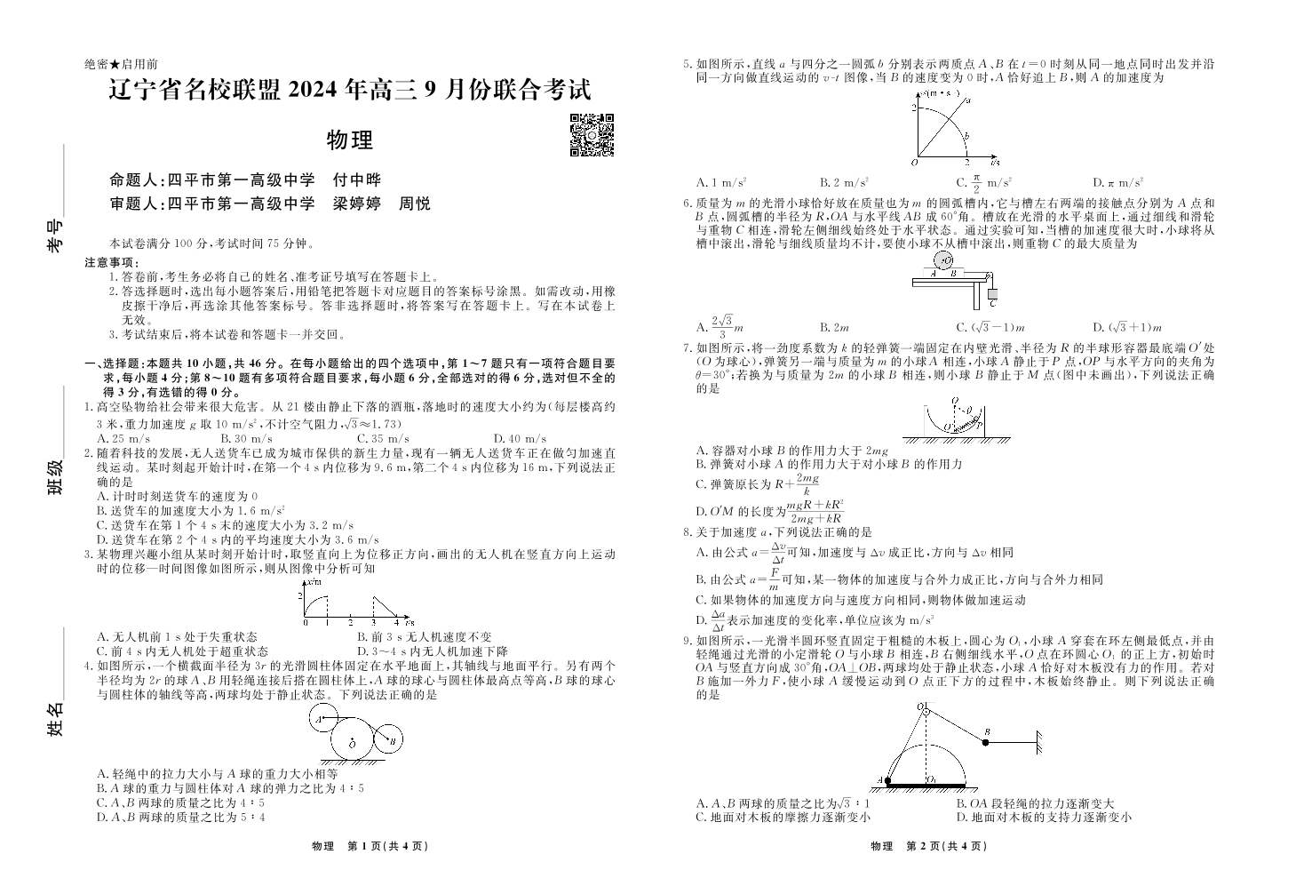 辽宁省名校联盟2024年高三9月份联合考试 物理