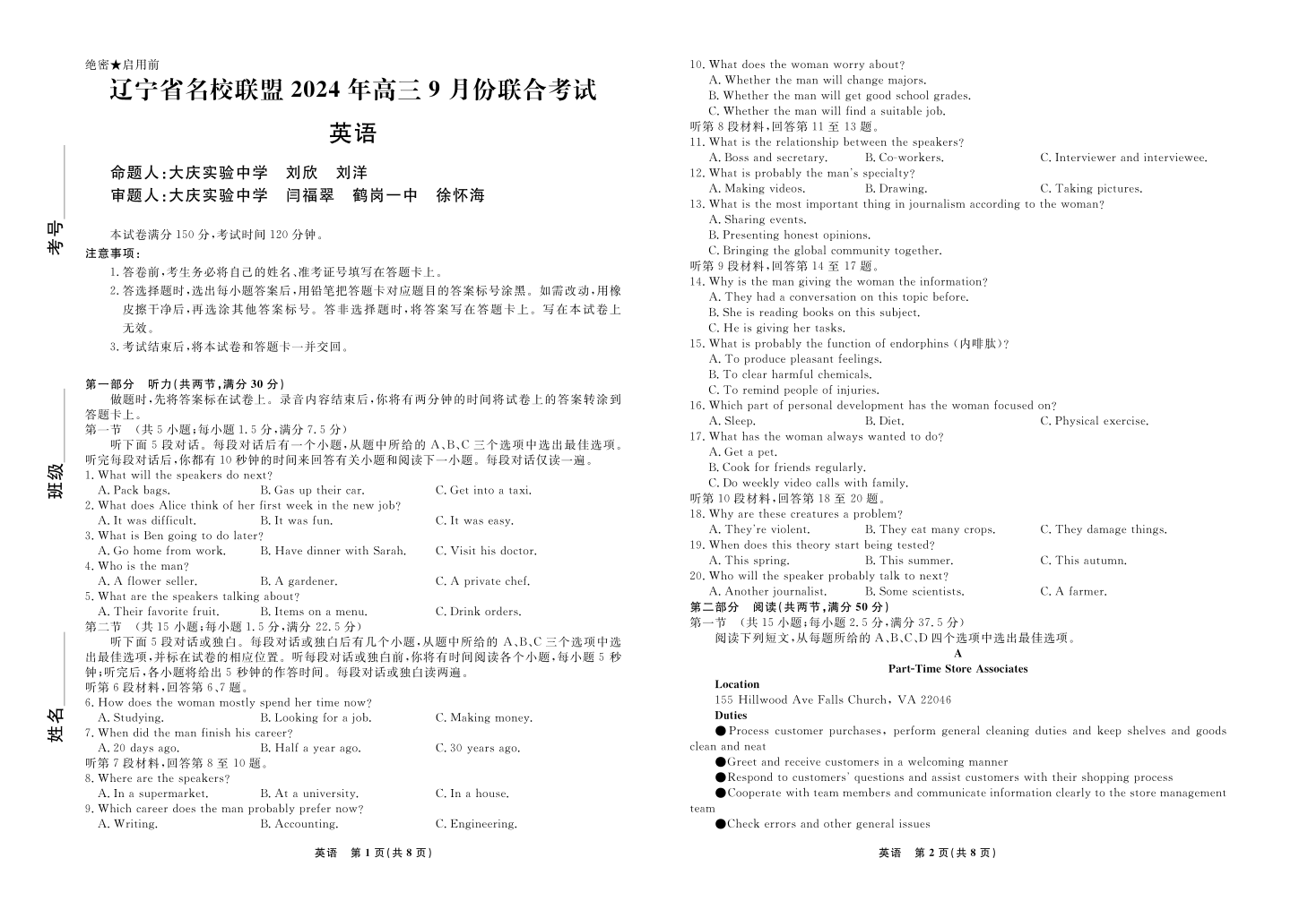 辽宁省名校联盟2024年高三9月份联合考试 英语