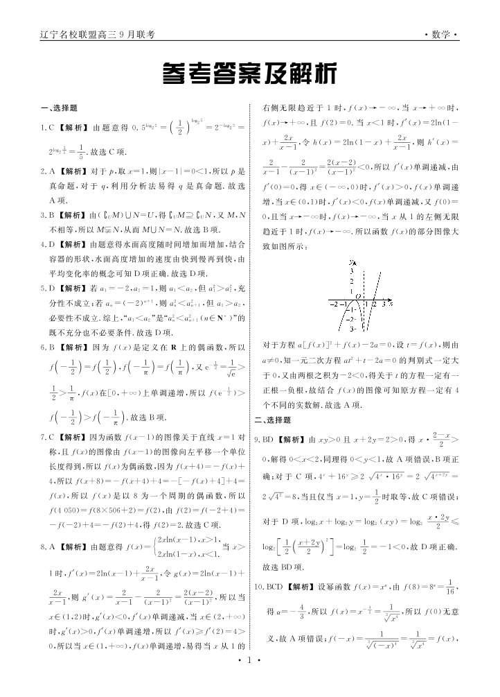 辽宁省名校联盟2024年高三9月份联合考试 数学答案