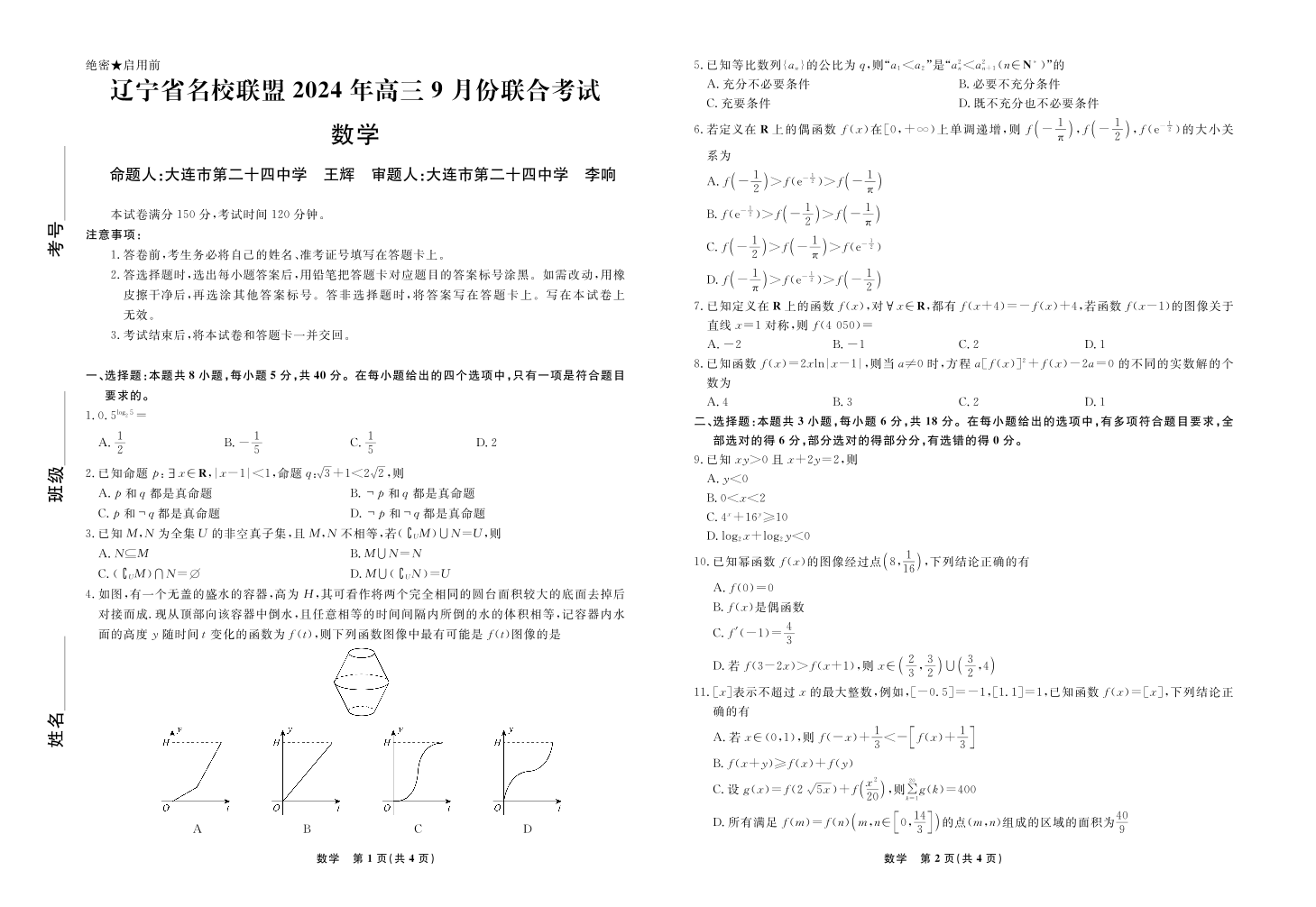 辽宁省名校联盟2024年高三9月份联合考试 数学