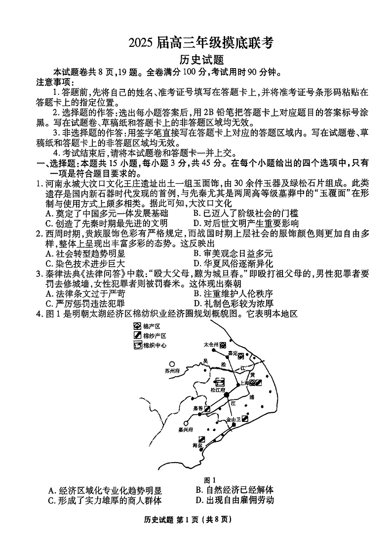 山东省衡水金卷2025届高三年级上学期九月摸底联考 历史