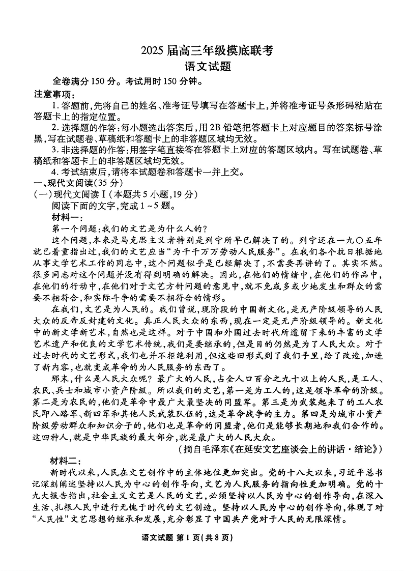 山东省衡水金卷2025届高三年级上学期九月摸底联考 语文