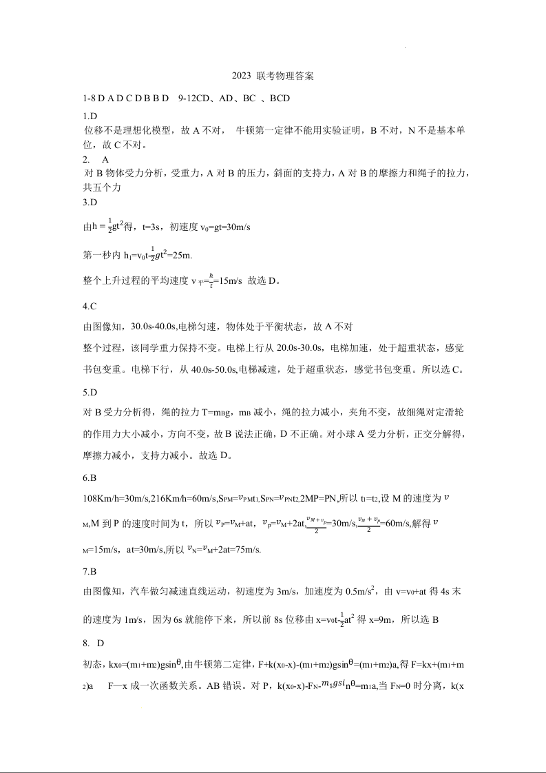 山东新高考联合质量测评9月联考(开学考)物理答案