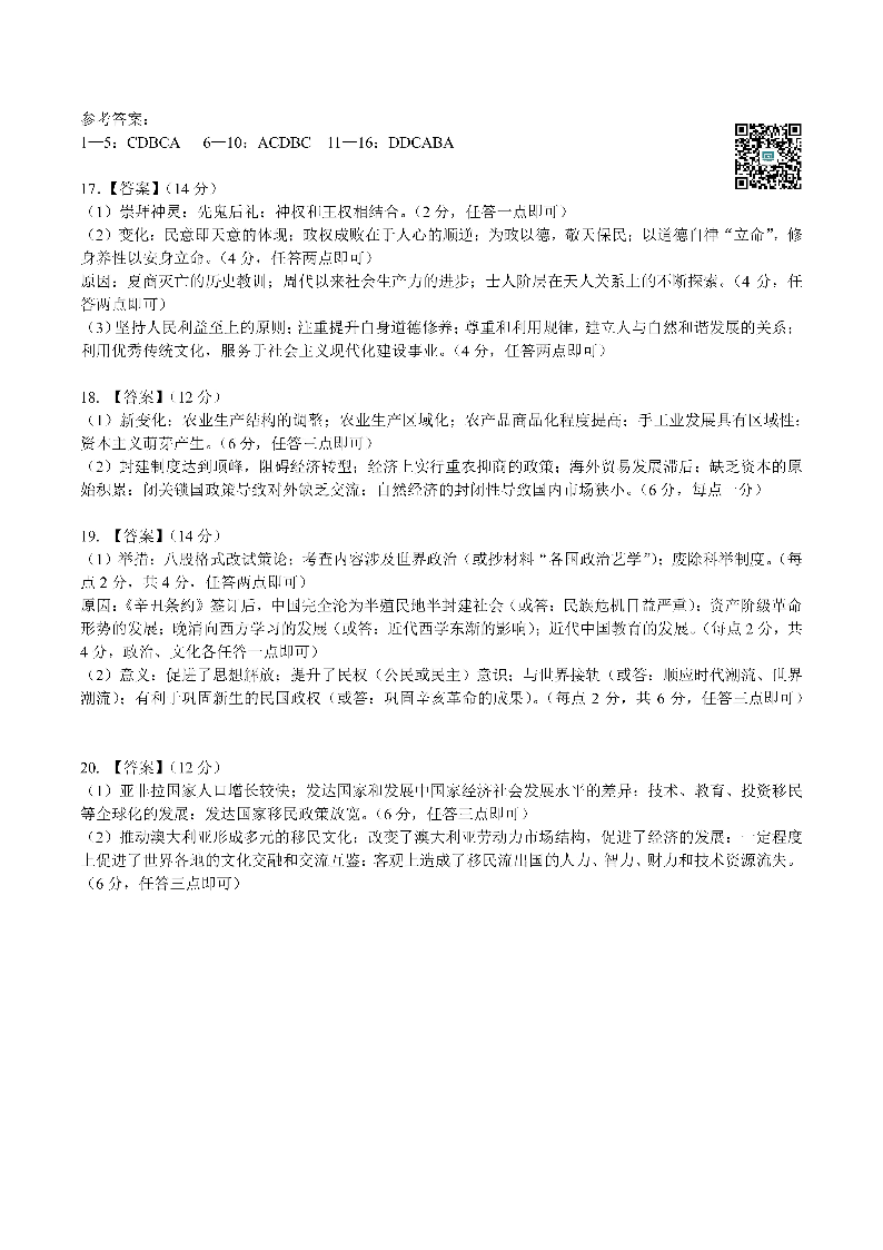 四川省成都市第七中学2024-2025学年高三上学期入学考试 历史答案