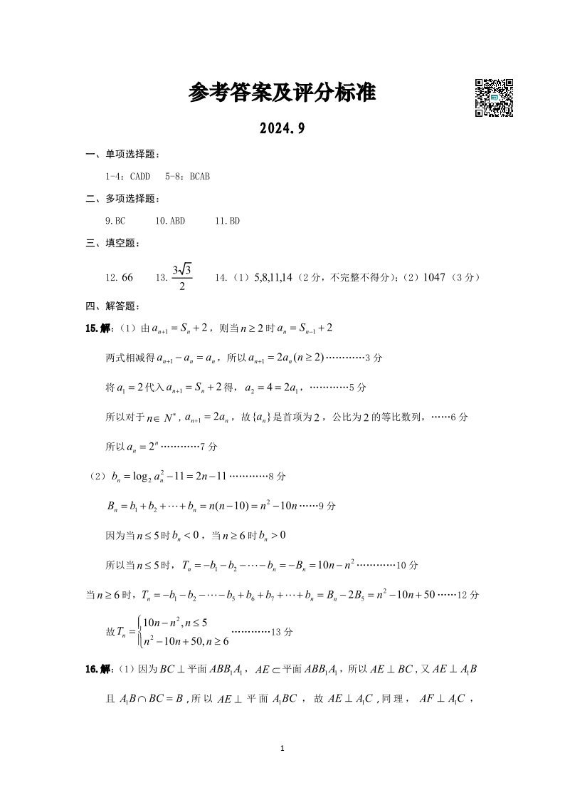 湖北省“宜荆荆恩”2025 届高三9月起点考试 数学答案