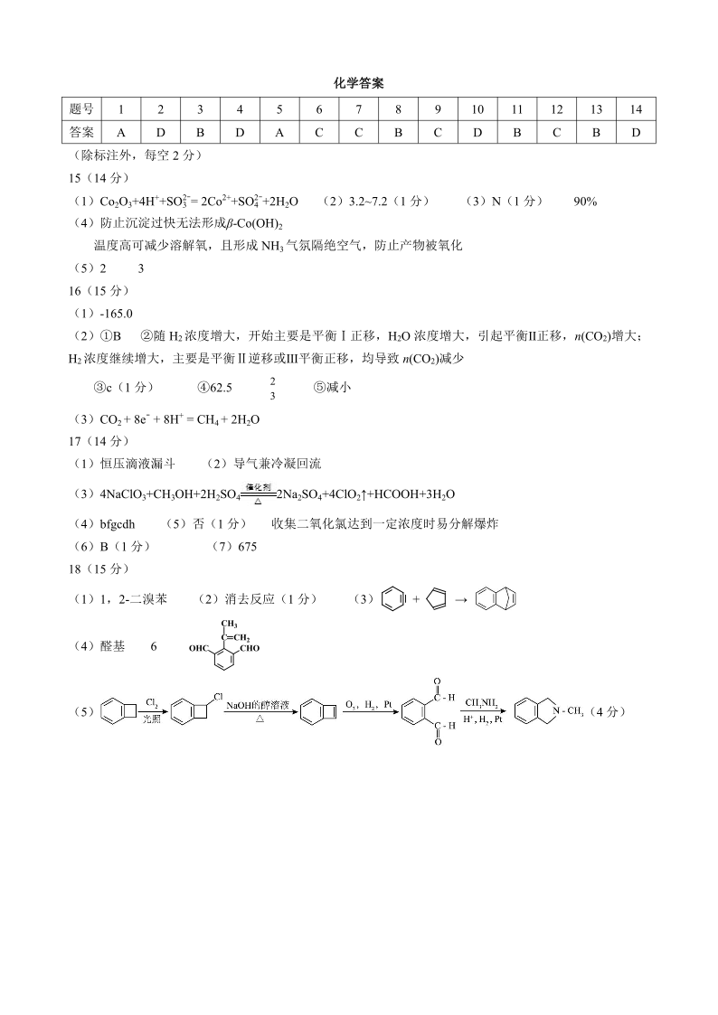 2025届广西名校高三年级9月联合调研测试 化学答案