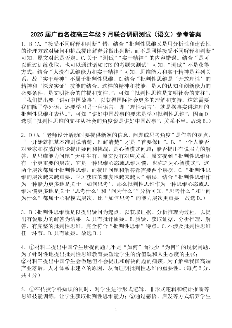 2025届广西名校高三年级9月联合调研测试 语文答案