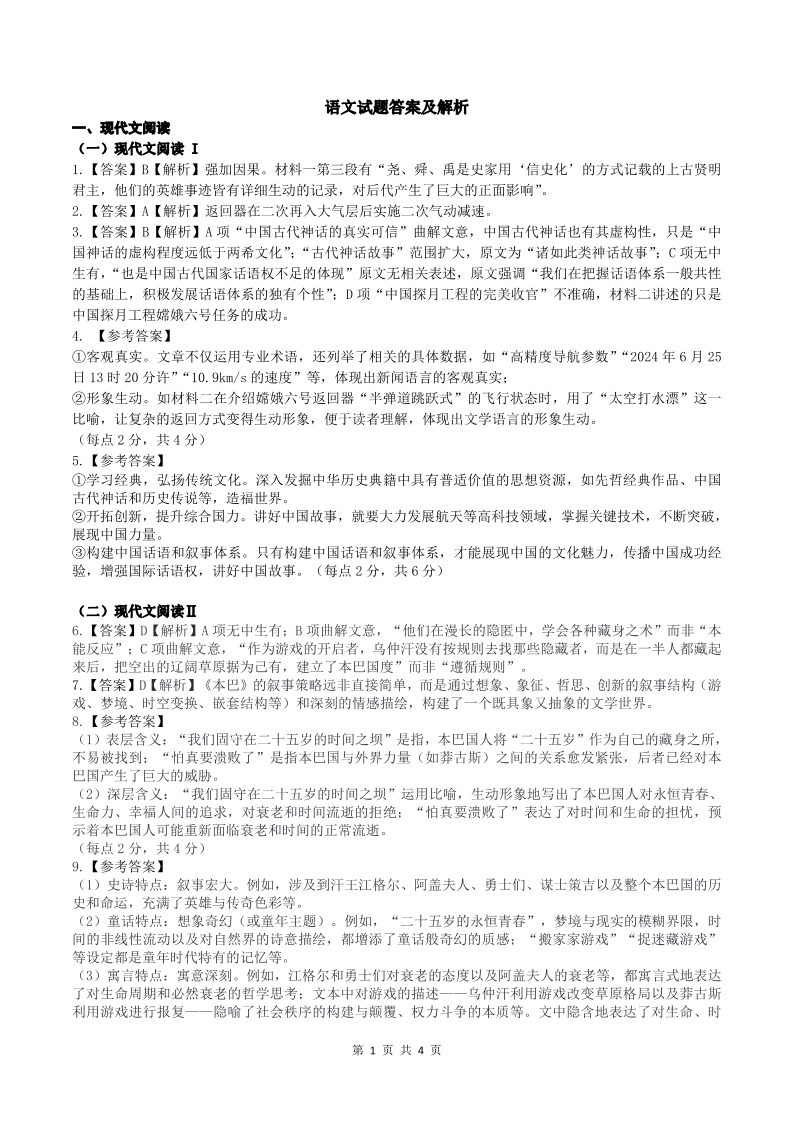 大庆市2025届高三年级第一次教学质量检测 语文答案