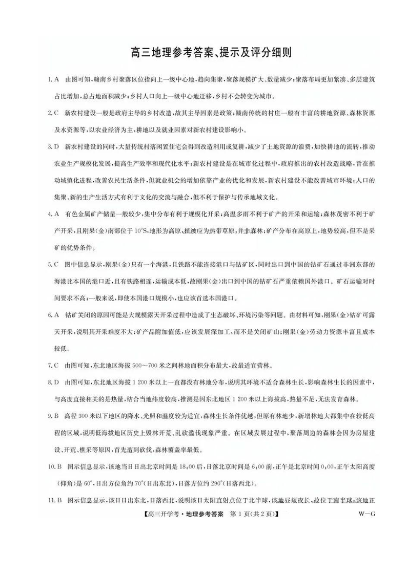 江西省九师联盟2025年高三年级上学期9月联考 地理答案
