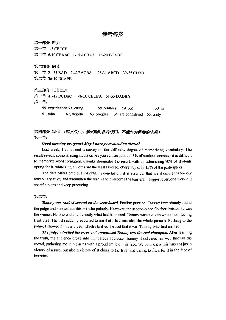 湖北省2024-2025学年度武汉市高三年级九月调研考试 英语答案