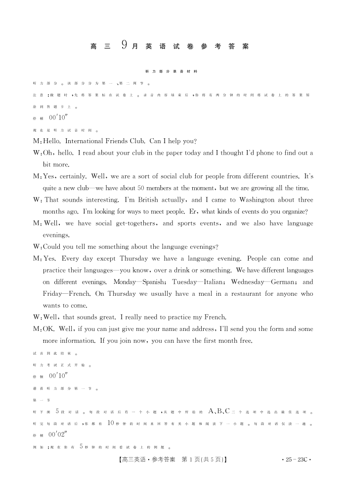 福建省部分学校2025届高三9月开学大联考 英语答案