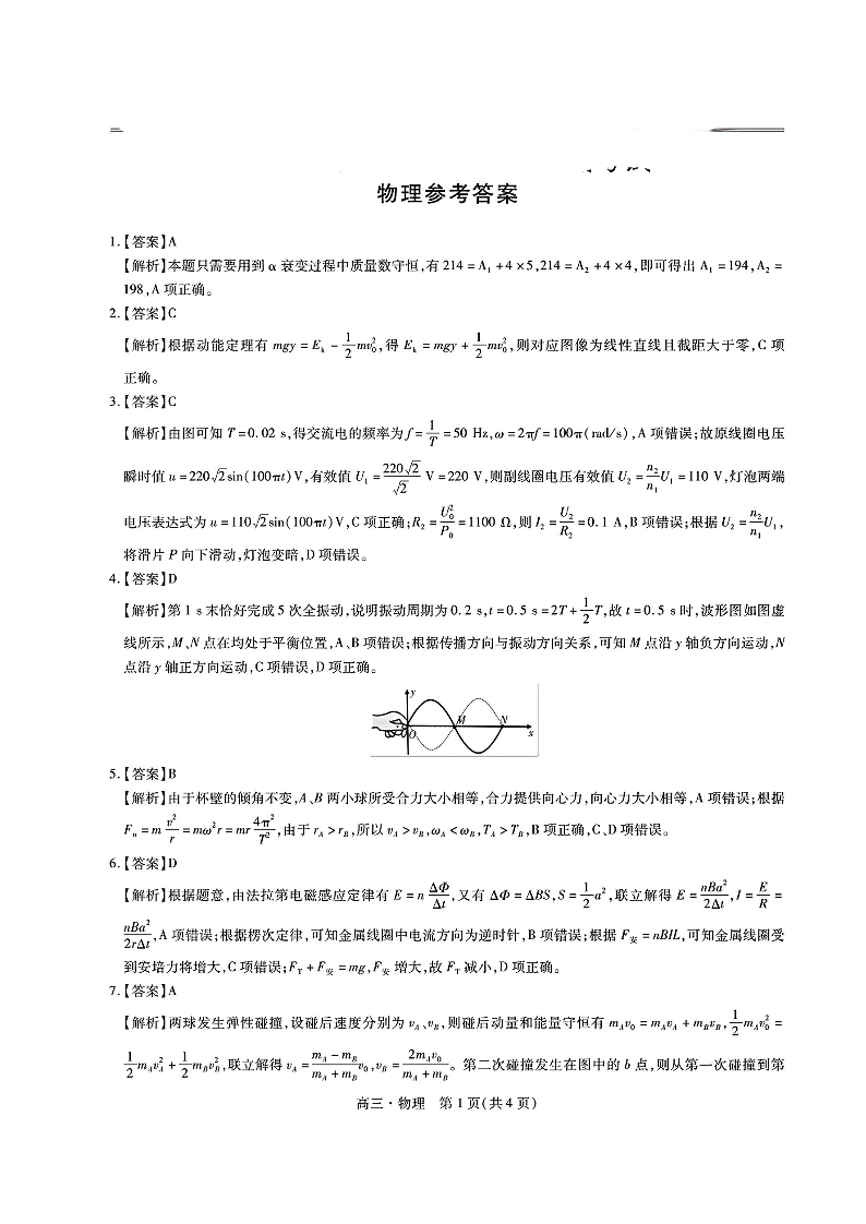 江西省稳派上进2025届新高三秋季入学摸底考试 物理答案