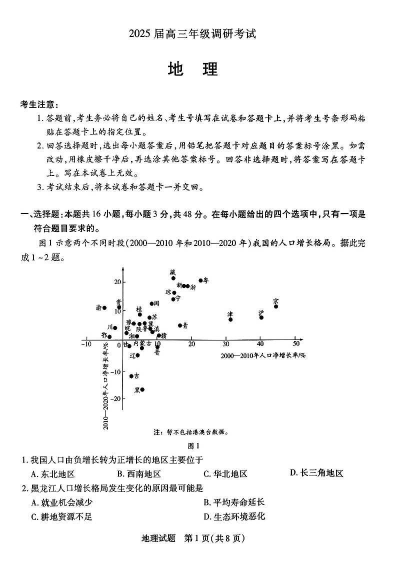 河南省天一大联考2025届高三年级9月调研考试 地理