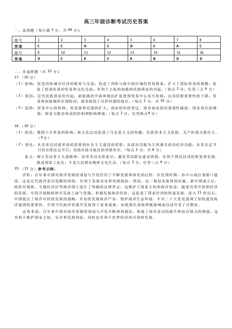 甘肃省兰州第一中学2024-2025学年高三9月诊断考试 历史参考答案