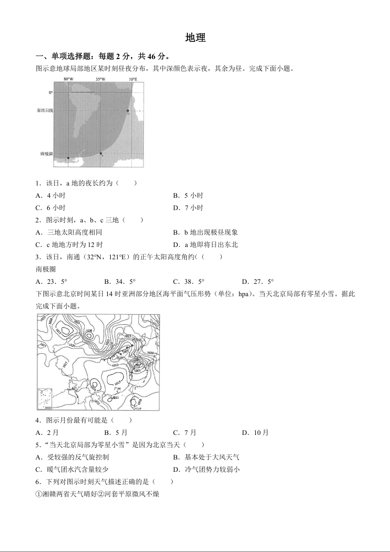 江苏省南通市海安高级中学2025届高三9月月考 地理
