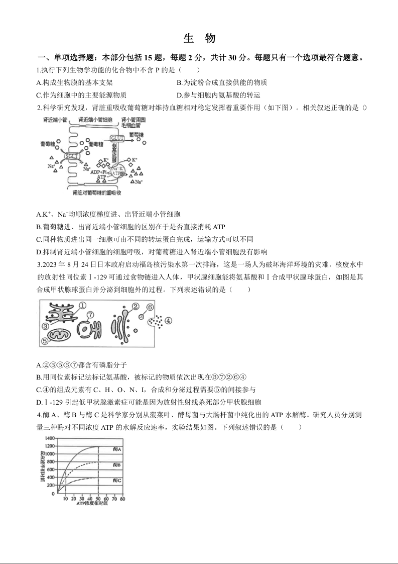 江苏省南通市海安高级中学2025届高三9月月考 生物