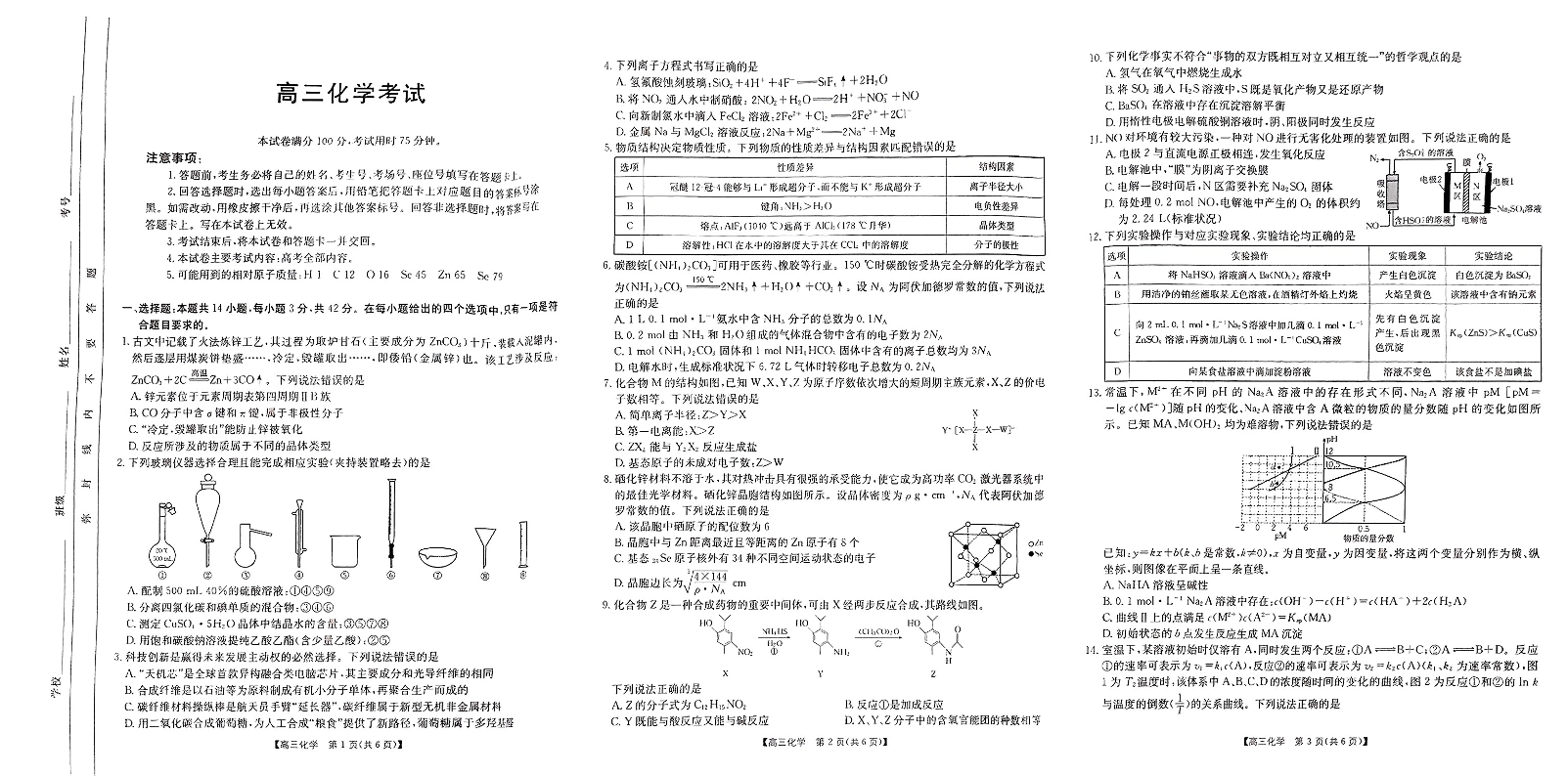 广西部分示范性高中2025届高三上学期摸底质检 化学