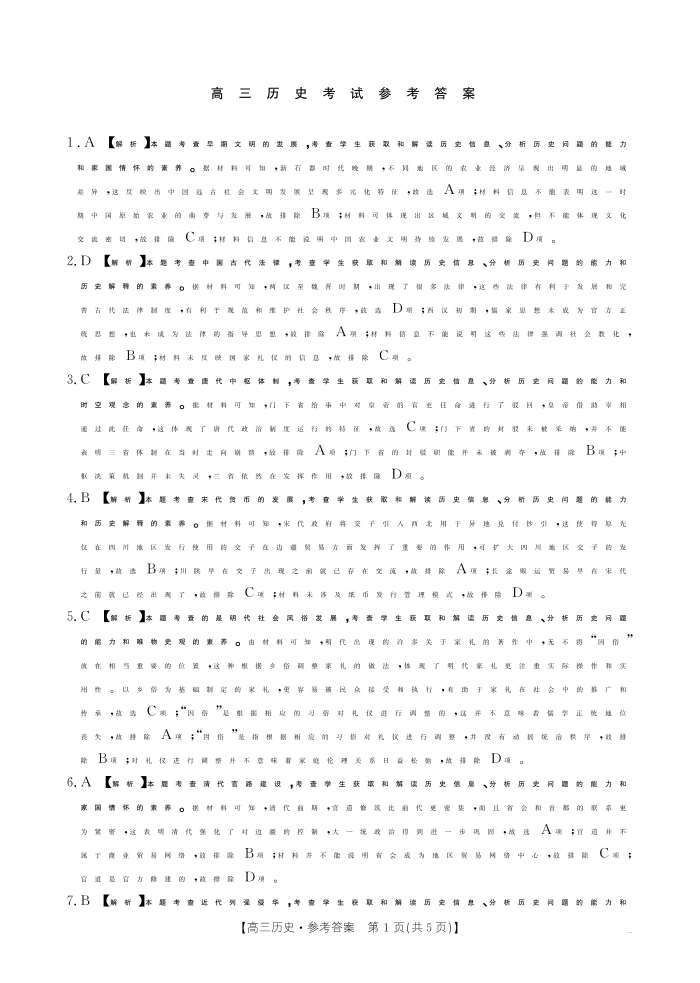 广西部分示范性高中2025届高三上学期摸底质检 历史答案