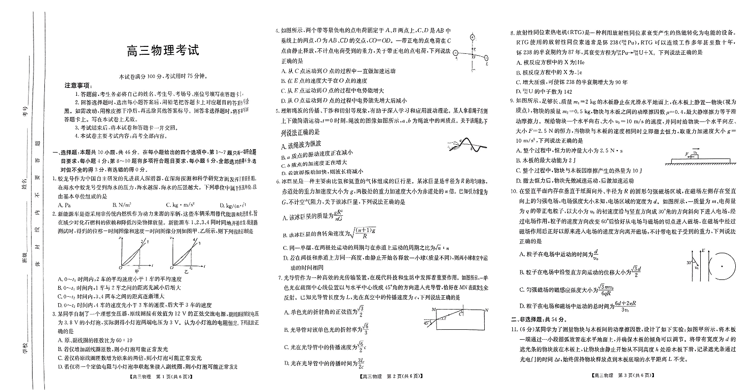广西部分示范性高中2025届高三上学期摸底质检 物理