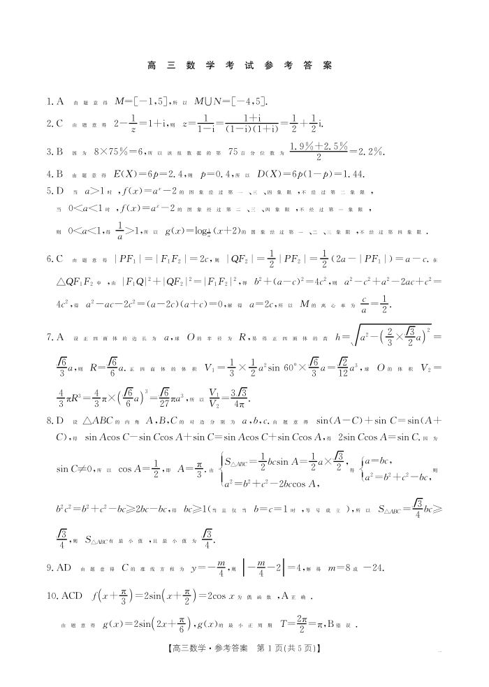广西部分示范性高中2025届高三上学期摸底质检 数学答案