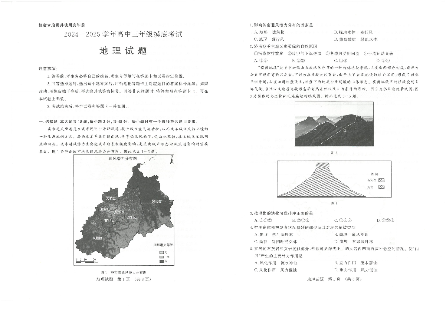 山东省济南市2024-2025学年高三九月摸底考试 地理