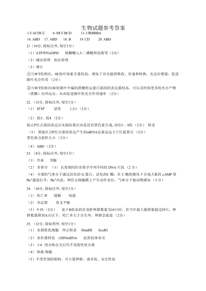 山东省济南市2024-2025学年高三九月摸底考试 生物答案