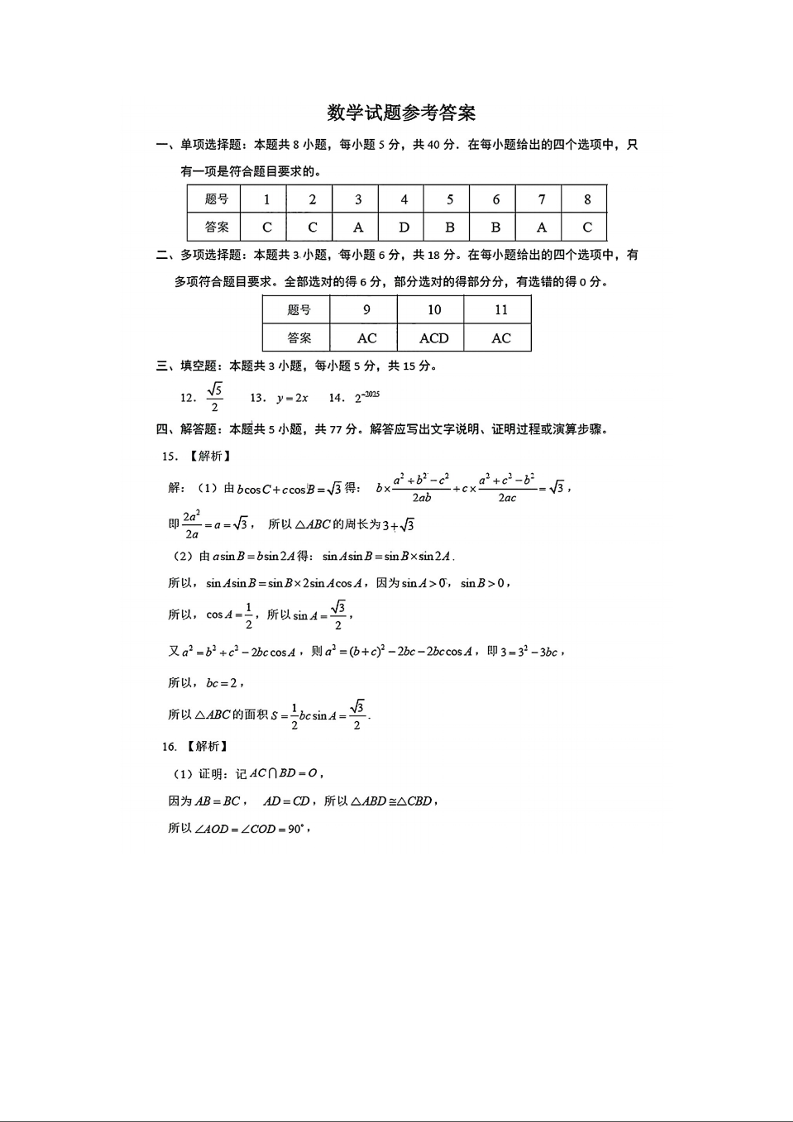 山东省济南市2024-2025学年高三九月摸底考试 数学答案
