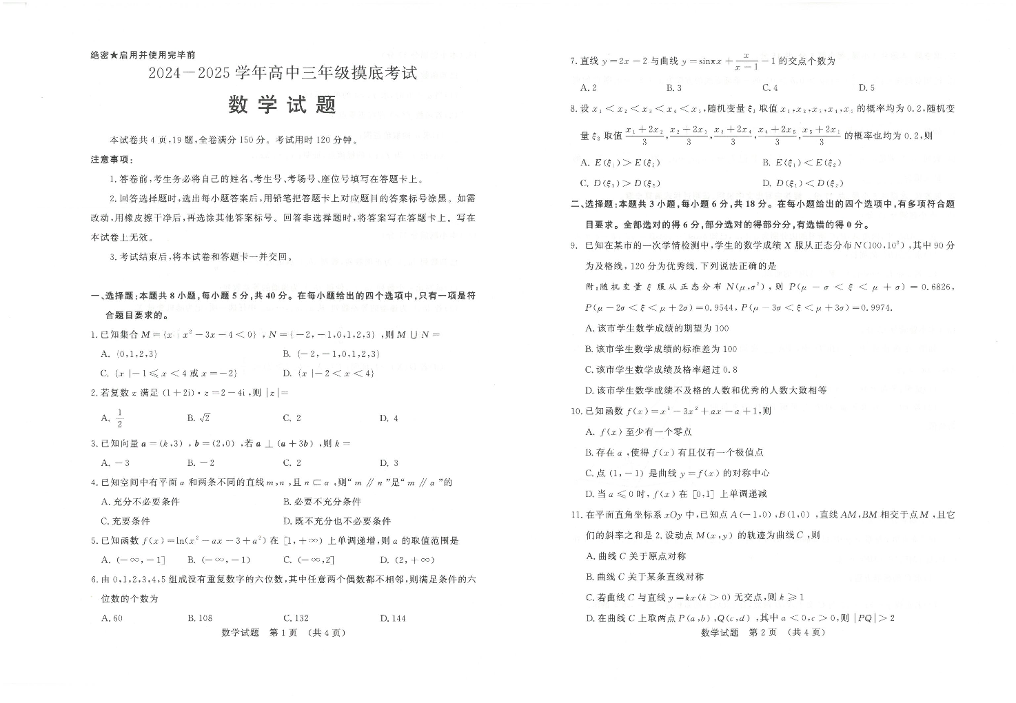 山东省济南市2024-2025学年高三九月摸底考试 数学