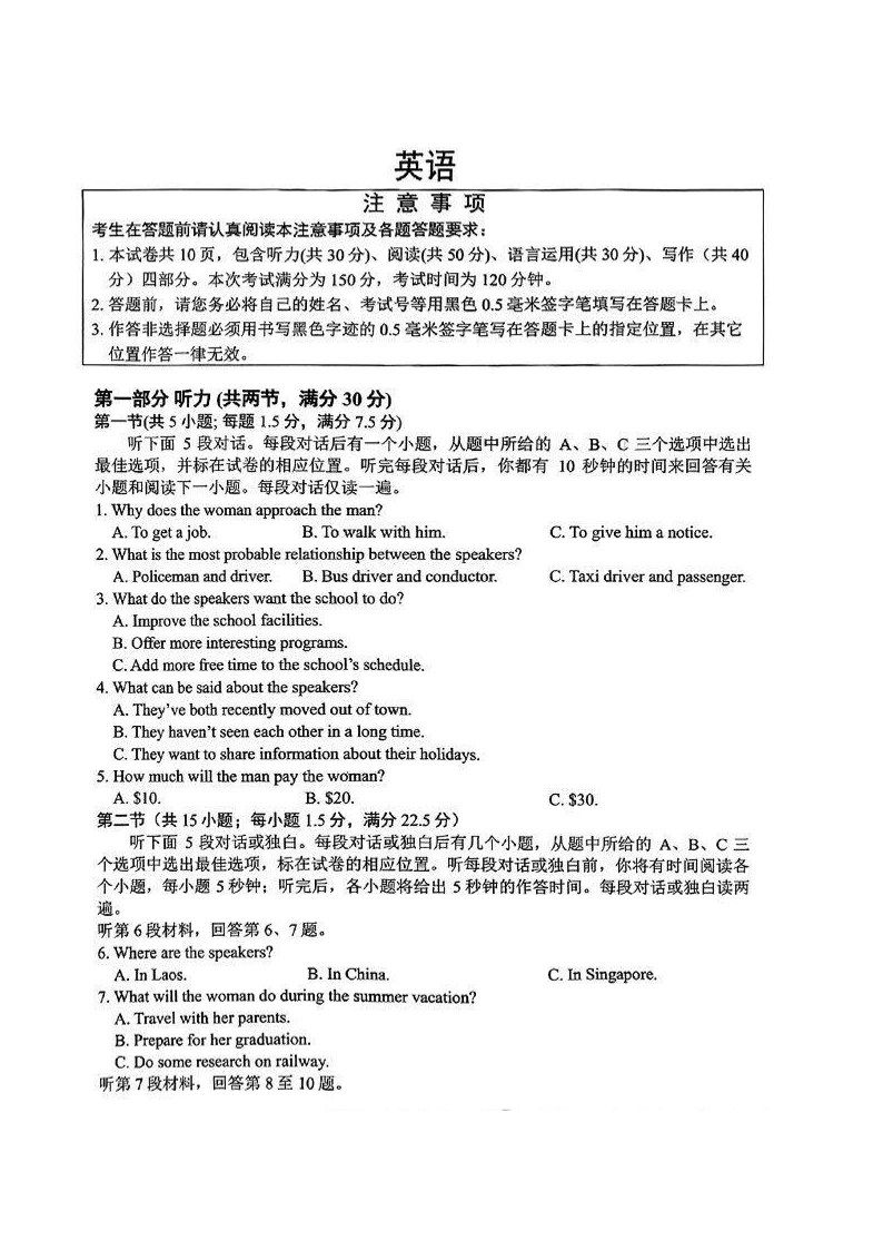 江苏省南通市2025届高三九月份调研测试 英语