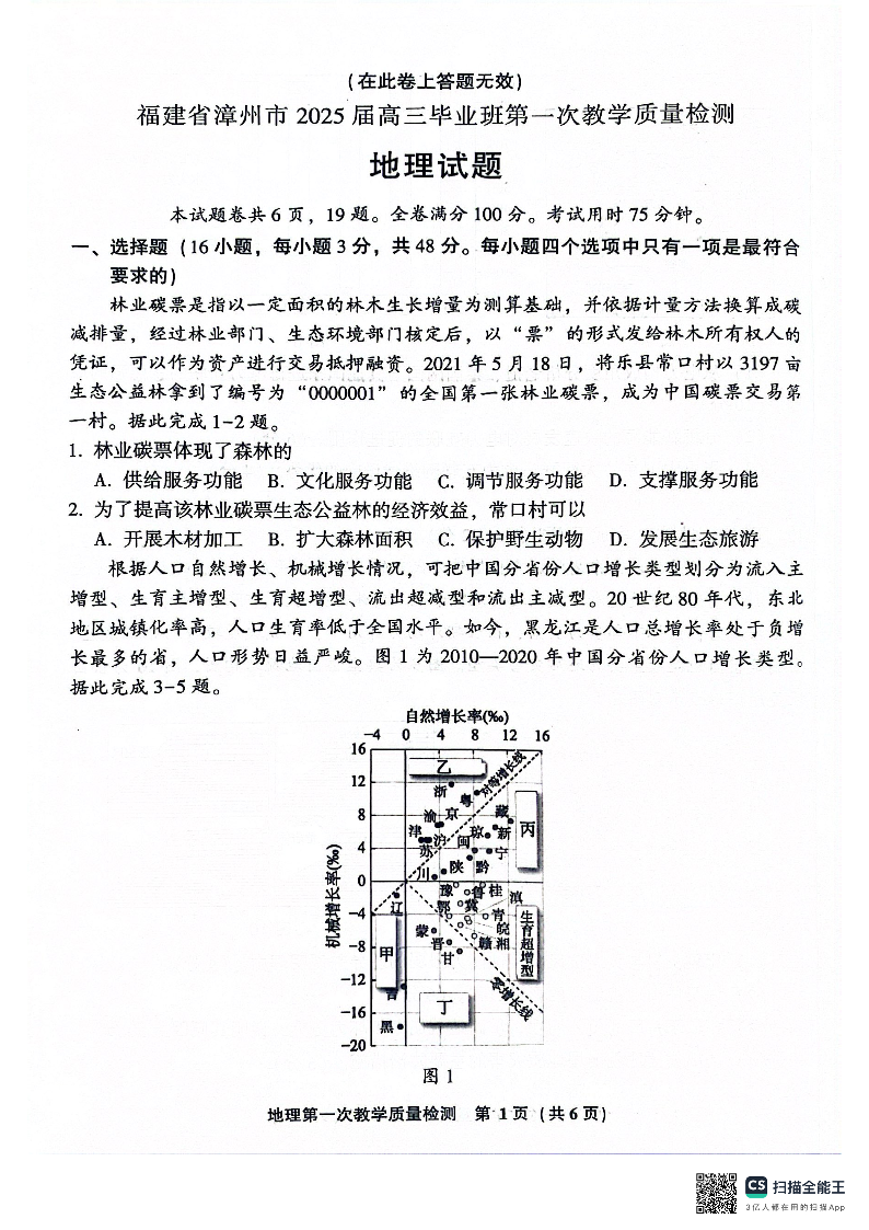 福建省漳州市2025届高中毕业班第一次质量检测 地理
