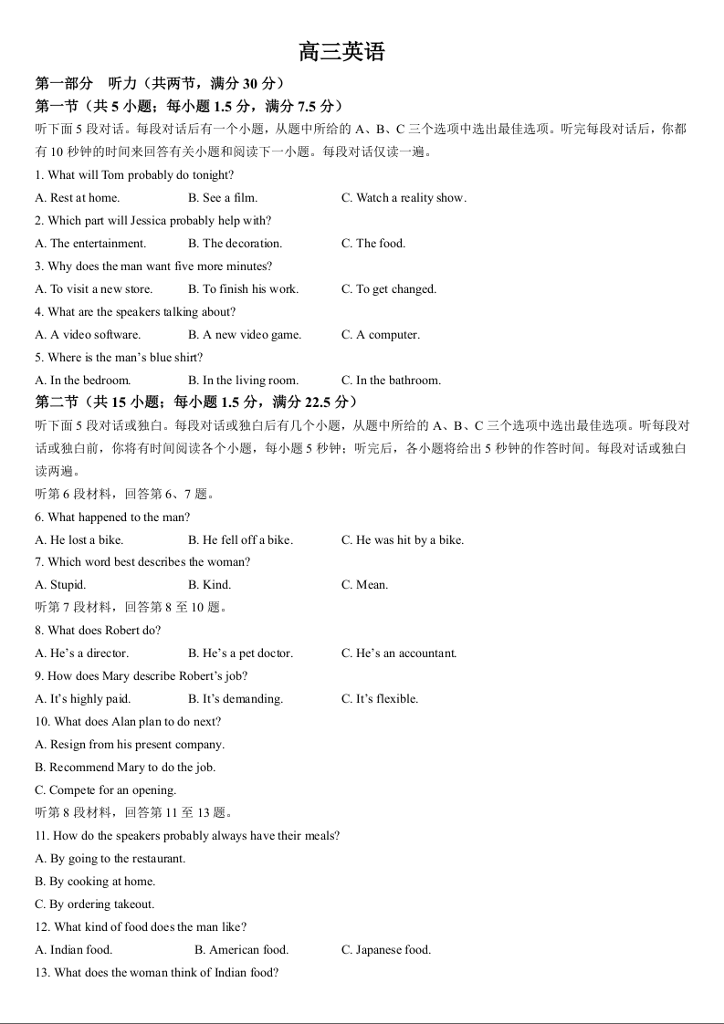 吉林省通化市梅河口市第五中学2025届高三9月月考 英语
