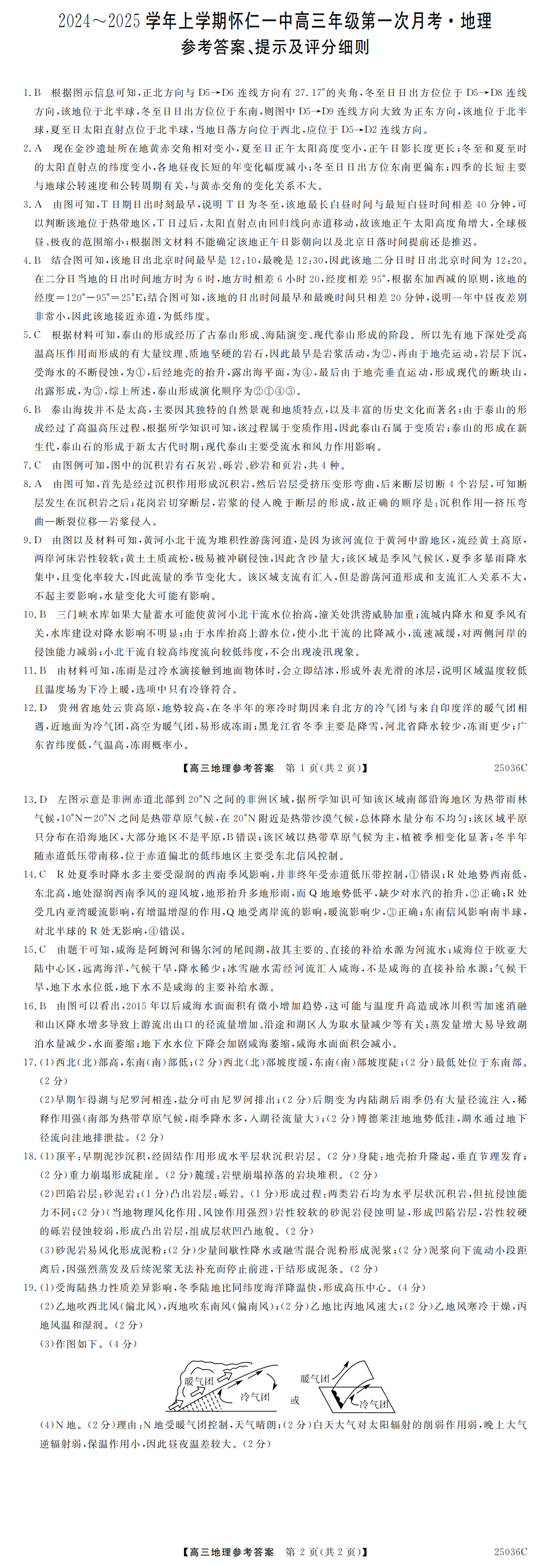 山西省2024-2025学年上学期怀仁一中高三年级第一次月考 地理答案