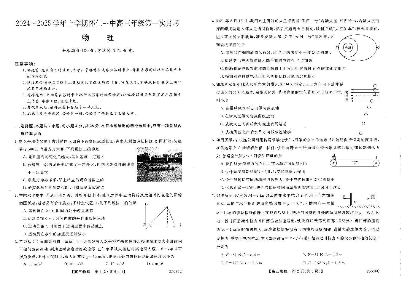 山西省2024-2025学年上学期怀仁一中高三年级第一次月考 物理