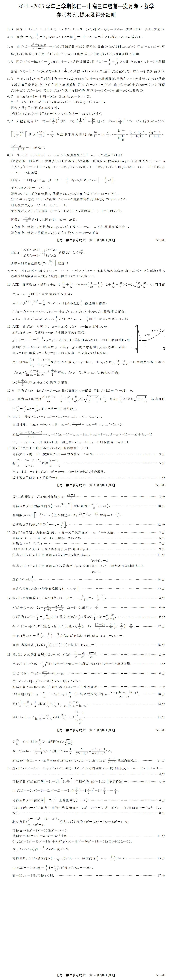 山西省2024-2025学年上学期怀仁一中高三年级第一次月考 数学答案