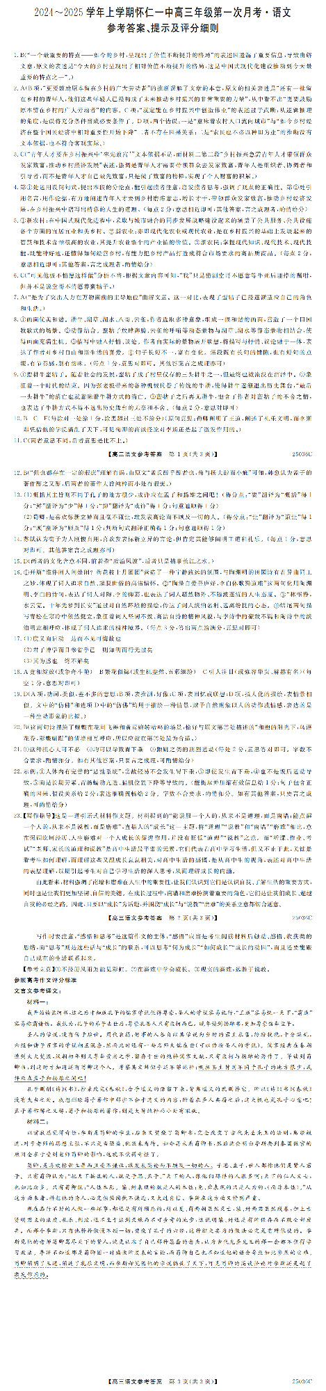 山西省2024-2025学年上学期怀仁一中高三年级第一次月考 语文答案